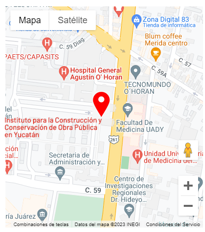 UbicaciónAv. Itzáes S/N Interior A por 59-A y 59 Col. Centro, C.P. 97000 Mérida, Yucatán Horario de atenciónLunes a viernes hábiles de 08:00 a 15:00 horas. |